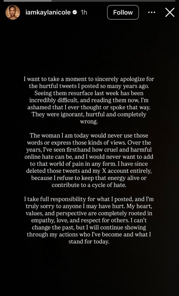 Kayla Nicole apologizes for deleted posts, says she refuses to ‘contribute to a cycle of hate’
