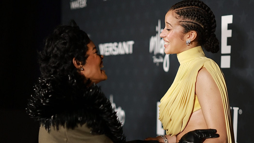 Winter glamour was in full effect throughout the evening. Michael B. Jordan, with his mother Donna on his arm, stepped out in a burgundy suit paired with a light pink top alongside the cast of “Sinners.” Teyana Taylor showed up and showed out in Saint Laurent menswear, wearing a taupe oversized suit, black knee-high leather boots, matching gloves, and a dramatic oversized fur shawl. Meanwhile, her “One Battle After Another” co-star Chase Infiniti posed alongside her in a Grecian-esque buttery two-piece with a draped top. Jessica Williams opted for understated elegance in a creamy white sleeveless gown accented with a black bow, while comedian Ego Nwodim turned heads in a red, long-sleeved gown featuring a sultry side slit and black bow detailing.