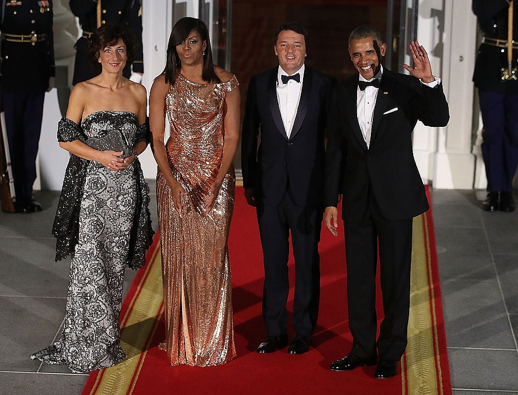 “The Versace dress was the last state dinner [with former Italian Prime Minister Matteo Renzi and his wife, Mrs. Agnese Landini]. So that was a kind of, I don’t care,” said Obama. “I will tell you that one was like, because of the dresses that were available, that rose gold, I put that on. I was like, this is sexy. It’s the last one.”