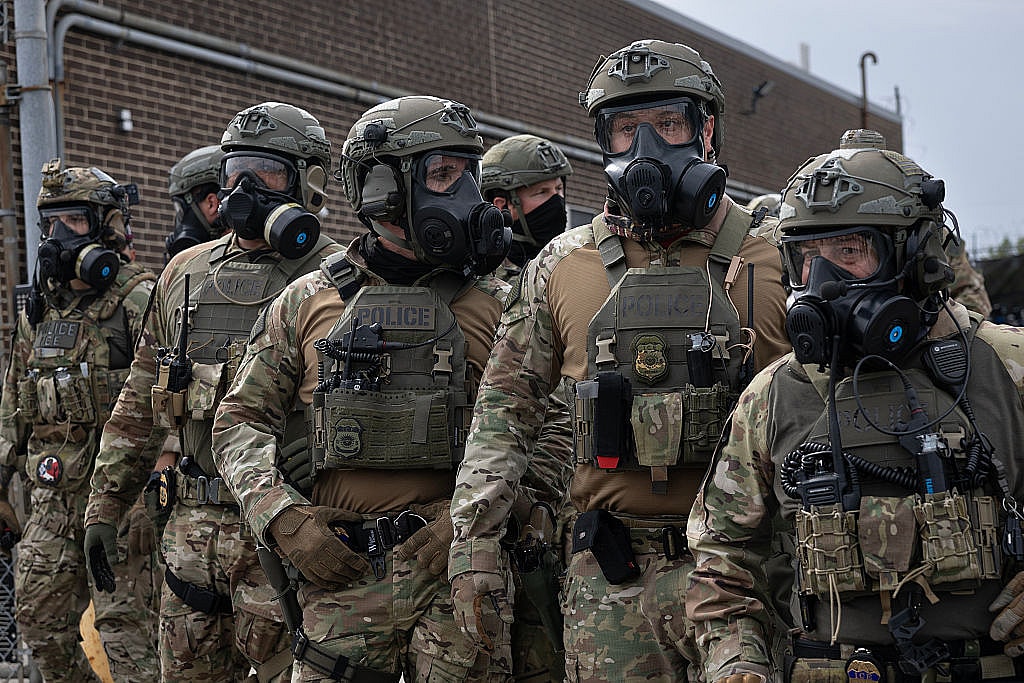 BROADVIEW, ILLINOIS – SEPTEMBER 19: Federal law enforcement agents confront demonstrators protesting outside of an immigration processing center on September 19, 2025 in Broadview, Illinois. The demonstrators were protesting a recent surge in ICE activity in the Chicago area, part of the Trump administration’s crackdown on undocumented immigrants in the area dubbed Operation Midway Blitz. (Photo by Scott Olson/Getty Images)
